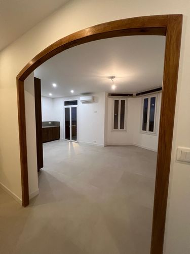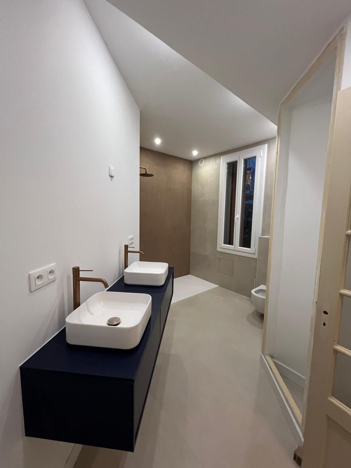 La teinte beige adoucit l’aspect brut du béton et apporte une ambiance chaleureuse tout en conservant un esprit contemporain.